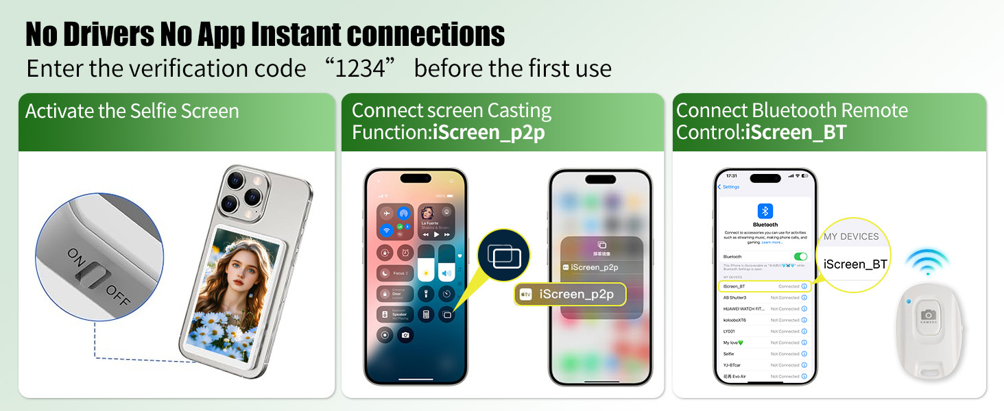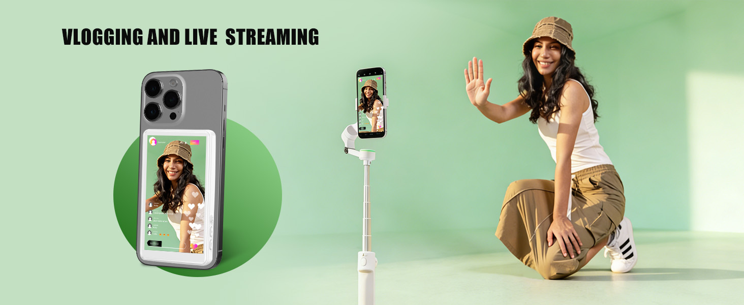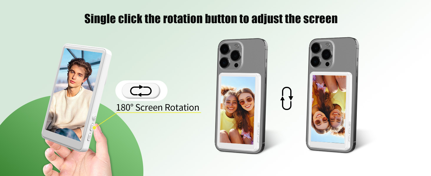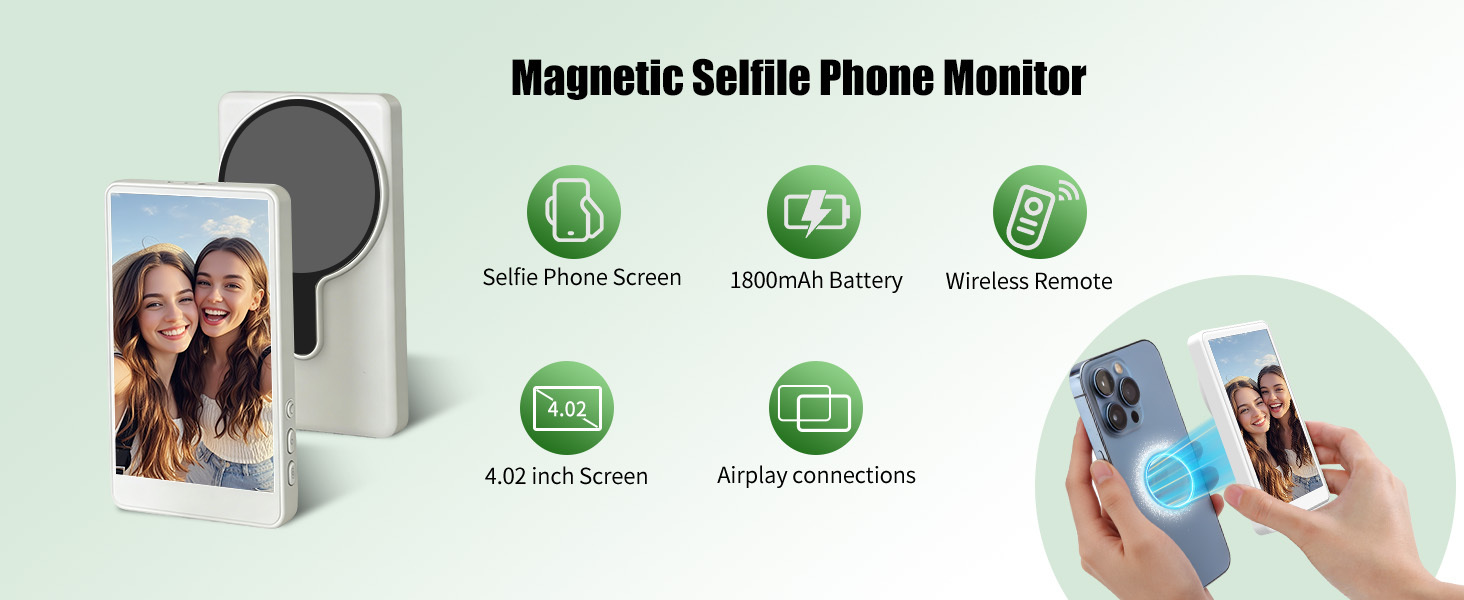 The Wireless Video Phone Monitor from ANDYCINE is a 4" wireless LCD monitor that provides real-time screen sharing from a distance of up to 32.8' for perfect framing while vlogging, shooting selfies, or live streaming. It is a screen monitoring solution for content creators using smartphones for video production.The included smart remote control offers mirror mode, rotate, and capture control, ideal functions for when you're working alone. It pairs easily with iOS and Android devices, as well as all 4K format recording with 4K Blackmagic camera App. Featuring an integrated magnet, mount this monitor to a MagSafe-compatible iPhone, a smartphone with magnetic attachment capabilities, or even directly to metal surfaces.